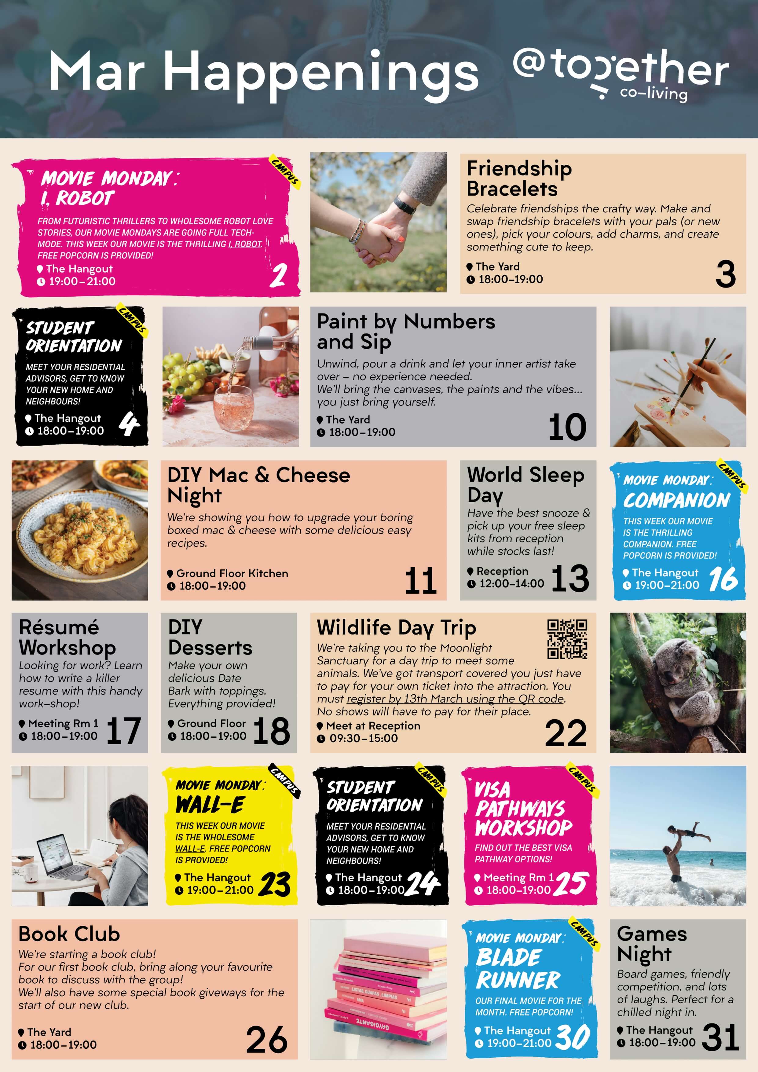 There's no shortage of fun happenings in and around Campus Melbourne - from film screenings to fitness classes, pizza nights to full-blown parties, you're bound to find something you'll enjoy. See what’s on this month.