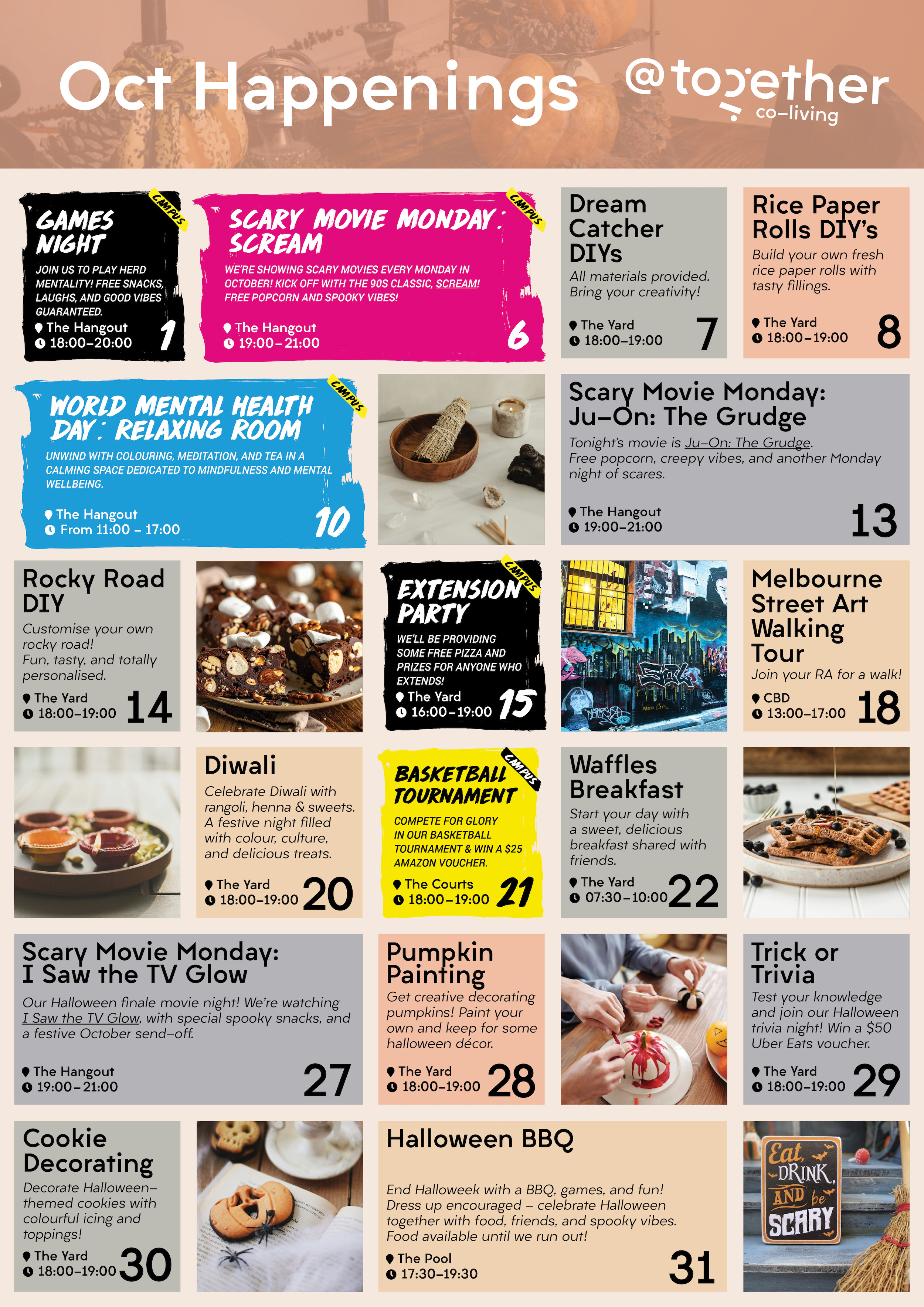 There's no shortage of fun happenings in and around Campus Melbourne - from film screenings to fitness classes, pizza nights to full-blown parties, you're bound to find something you'll enjoy. See what’s on this month.